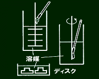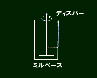 昇降ハンドルによりディスク1〜2枚がミルベース浸漬した時点で規定の速度で機動させる。 |